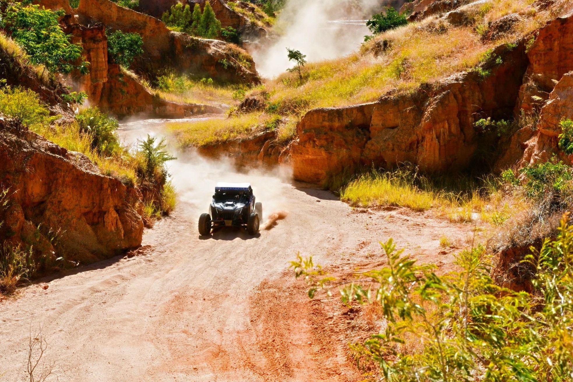 中午时分,本届赛事排位赛正式拉开序幕,车手们需要按照规则规定路线完成比赛,不仅将体验到场地中的各类障碍,而且深入土林的赛段也充满了刺激。“大场地、小拉力”模式的创新赛制从当日排位赛便开始显现独特的魅力。