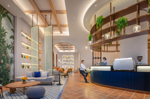 作为锦江酒店推出的首个创新酒店品牌,欧暇·地中海酒店以地中海色彩为灵感来源,将蔚蓝的海岸和白色的沙滩带到了酒店的设计之中,仿佛让人置身于电影《碧海蓝天》中丽娜住的圣托尼里的景点之中。此外,酒店还通过如“梵高”艺术作品中经典的向日葵花田的金黄和树木深棕色等元素,将艺术作品中的经典融入到设计中,“天堂之果”的橄榄绿色是酒店的主色调,也是众多好莱坞女星及世界超模宠爱的色彩。旅客纷纷表示酒店的设计为自己带来了视觉上的享受。