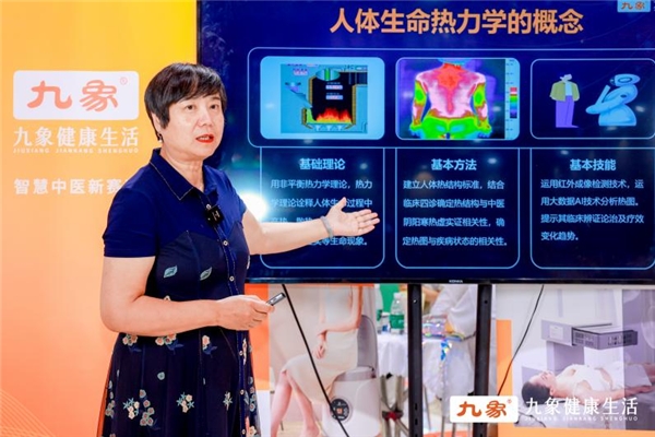 随后,作为鹰眼首席中医红外专家的李洪娟教授从专业层面出发,介绍了九象智能健康模式的基础——“人体生命热力学”与红外热成像检测技术,以及该技术在中医临床疾病诊断中的应用情况,并且带我们看到了该技术在养生领域中的应用优势和趋势。