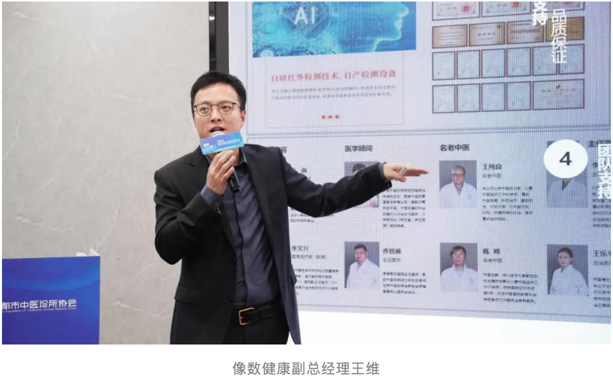 在大会主论坛,像数健康执行总裁陈颢云在演讲中表示,在健康中国规划纲要的总体引领下,“促进中医药传承创新发展”已成为势不可挡的健康新潮流。像数健康作为鹰眼智慧中医旗下子品牌,以中医红外可视化智能检测为特色,致力于提供以治疗未病、慢病为核心的智慧中医健康管理服务。基于人工智能核心技术优势,创新推出智慧中医特色“检诊疗评管”一体化全流程管理服务系统,以全国网格化布局的智慧中医馆为载体,通过智慧中医健康管理云平台,打造线上、线中、线下的全域健康管理服务网络。