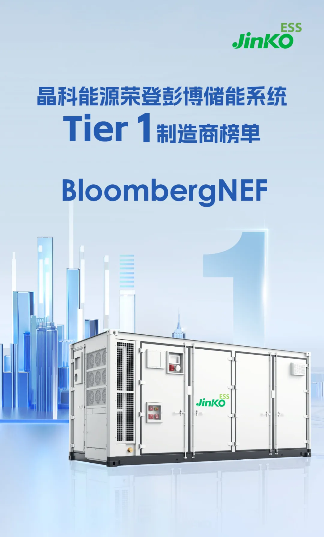 晶科能源获评彭博BNEF Tier1全球一级储能厂商!