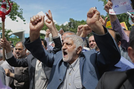 2018年5月11日,在伊朗首都德黑兰,民众抗议美国退出伊核协议。新华社发(哈拉比萨兹摄)
