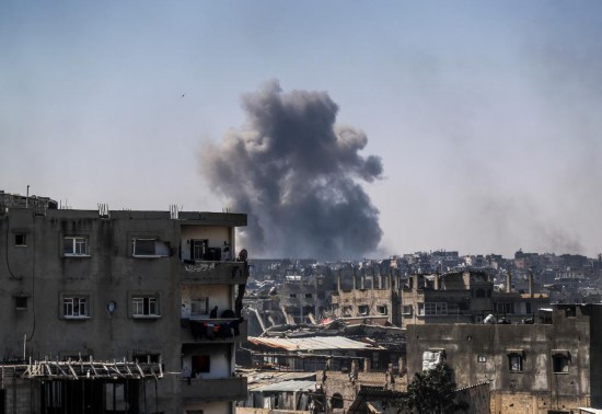 2025年4月19日,加沙城一处被以军空袭的地点冒出浓烟。新华社发(马哈茂德·扎基摄)