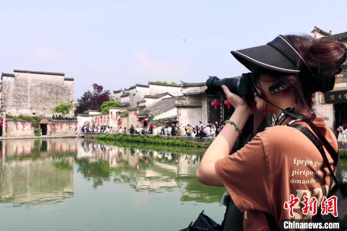 4月20日,香港学生在黟县宏村拍照。朱孔阳 摄