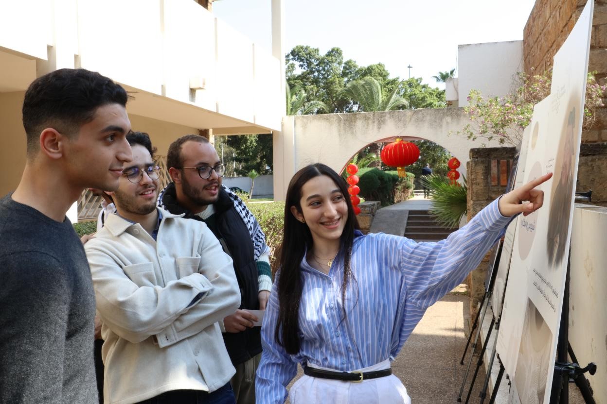 摩洛哥大学生在观看《永远的孔子》图片展。拉巴特中国文化中心供图