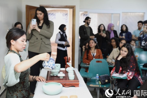 在互动体验工作坊,民乐老师演奏经典曲目,并向摩洛哥学生们讲解中国乐器的分类和发展史;书法教室内,学生们了解了书法起源与汉字演变后,学习使用毛笔练习书写汉字;在茶艺师的演示下,他们尝试闻香识茶和排序制茶工序,领略中国茶文化的博大精深。