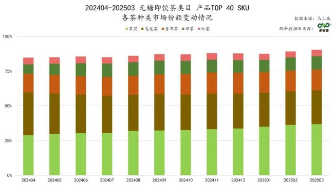 在无糖即饮茶市场中,茶种的选择仍然高度集中于传统品类,尤其是茉莉花茶,长期占据主流地位。