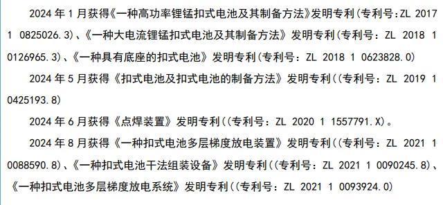 公司的持续发展,离不开技术研发方面的投入。2024年,力佳科技研发投入达1996.66万元,同比增长7.38%。此外,公司全资子公司宜昌力佳新获8项发明专利,涉及高功率锂锰电池等关键技术,主要包括《一种高功率锂锰扣式电池及其制备方法》《一种大电流锂锰扣式电池及其制备方法》《一种具有底座的扣式电池》等。此外,还有18项专利在审,技术储备覆盖长寿命电池等前沿方向。
