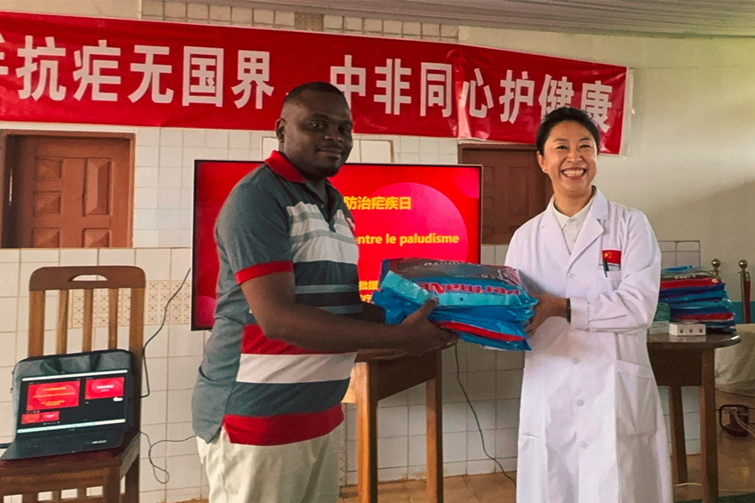 此次活动以“三个一”(一堂课,一部短剧,一批蚊帐)的形式开展。活动现场,医疗队队员围绕疟疾早期检测展开了专题培训,还通过自制的短片以诙谐剧情和动画拆解疟疾传播机制,搭配图文展板与趣味问答,将医学知识转化为通俗易懂的健康指南,传授给当地民众。感染疟疾后康复的患者马丁感慨:“中国医疗队带来的专业知识和创新科普方式,让我对疟疾诊疗有了更深入的认识。学到了疟疾防护要点,回家后一定会向家人朋友分享今天的收获。”