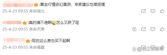 微博上的一些网友表示,黄金价格波动剧烈,难以捉摸,尤其是准备结婚的年轻人,选择何时购买金饰品成了难题。也有网友认为,金价已经超出可承受范围,只能选择观望。