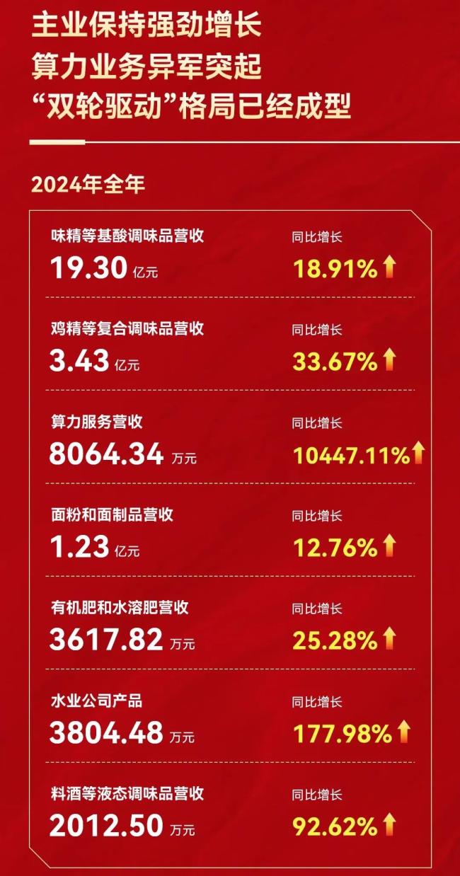 其中,2024年算力服务营收8064.34万元,同比增长10447.11%;2025年一季度,算力服务营收4369.68万元,同比增长394.6%,成为莲花控股的第二增长曲线。