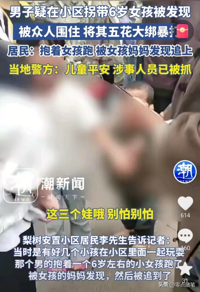 男子小区拐带6岁儿童?被众人绑住暴打,居民:逃跑被孩子妈追上!
