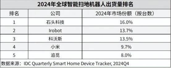 2024年,石头科技在海外市场的激进扩张策略已经初见端倪。财报数据显示,其境外营收飙升至63.88亿元,占总营收比重达53.48%,同比增幅高达51.06%,凭借这一迅猛增长,公司以16%的市场份额首次超越iRobot,跃居全球行业首位。然而,狂飙突进的市场攻势背后,是高昂的成本代价:同年境外业务毛利率同比骤降6.74%,暴露出“以利润换市场”战略的显著弊端。这种通过牺牲短期盈利换取市场份额的策略,直接导致公司利润空间被大幅压缩,在抢占市场与保障收益之间,石头科技正面临艰难的平衡挑战。