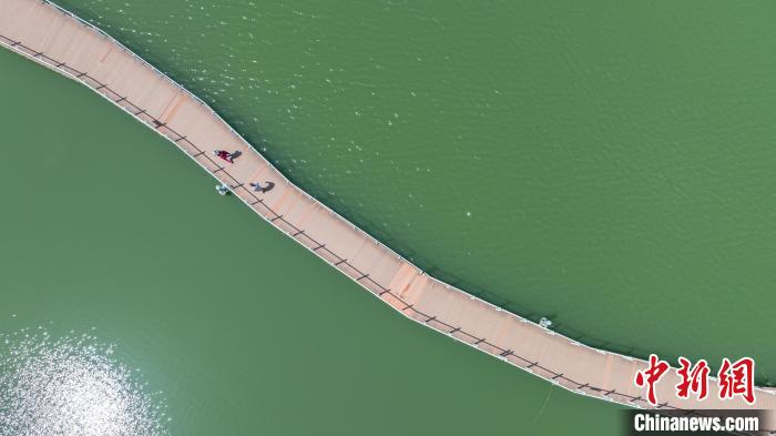 5月12日,航拍市民在阅山湖公园休闲散步。唐哲 摄