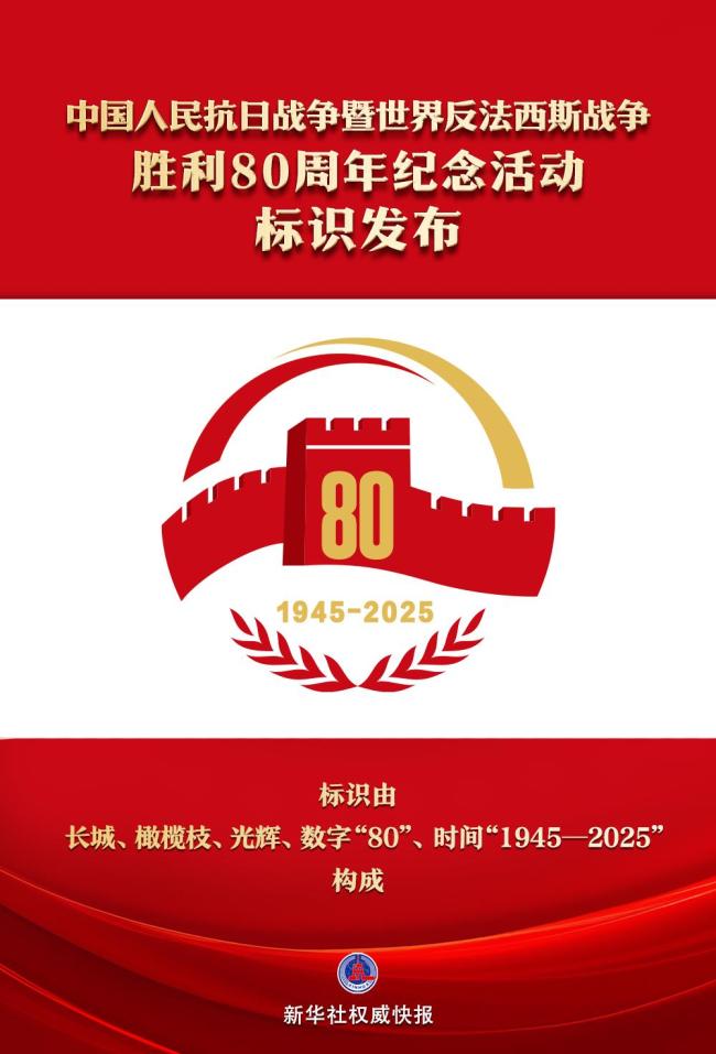 抗战胜利80周年纪念活动标识 正式发布!国务院新闻办公室于5月13日发布了中国人民抗日战争暨世界反法西斯战争胜利80周年的纪念活动标识。该标识融合了长城、橄榄枝、光辉、数字“80”以及时间“1945—2025”等元素。