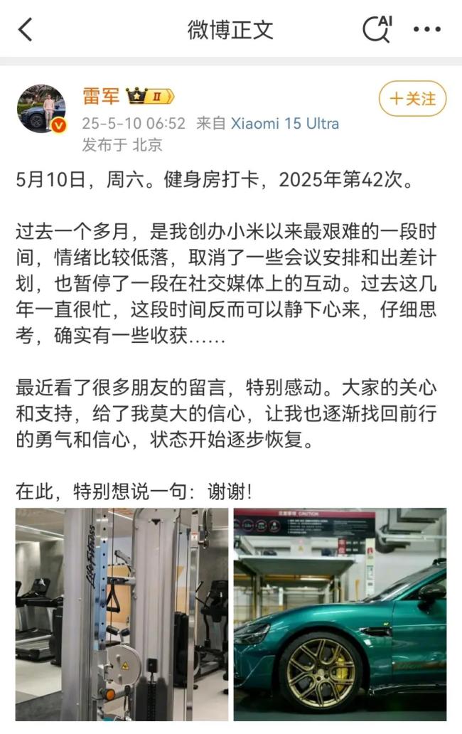 事实上,从安徽SU7事故后,小米汽车就处在风口浪尖,其他业务也受到影响,包括自研芯片在内,一系列产品和技术发布会无限延期。雷军的社交媒体降低了发布频率,没了生活化的分享。