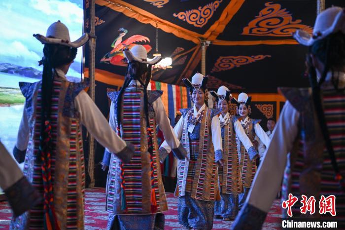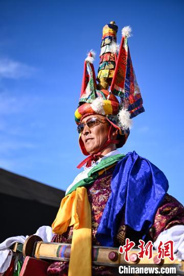图为当雄牧民身着节日盛装参加迎宾仪式。中新社记者 贡嘎来松 摄