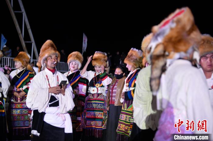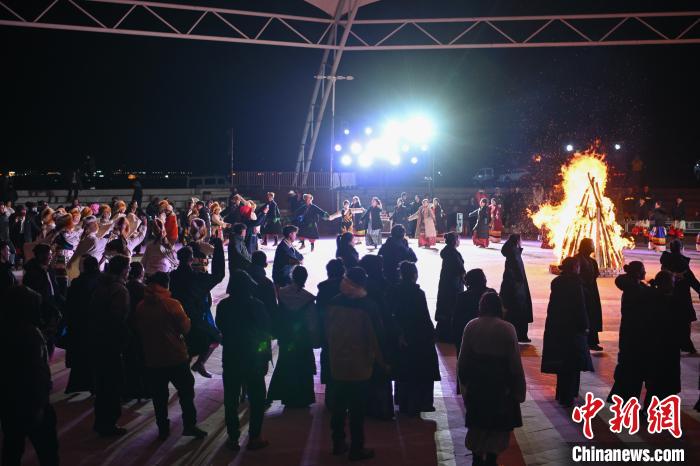 图为“情定当雄”篝火锅庄晚会现场。中新社记者 贡嘎来松 摄