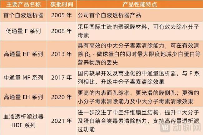 另一方面,在产品放量销售之后,威高血净根据临床意见反馈,及时优化迭代产品。2008年,其创新推出低通量F系列血液透析器;2013年推出高通量HF系列血液透析器;2017年推出中通量血液透析器……