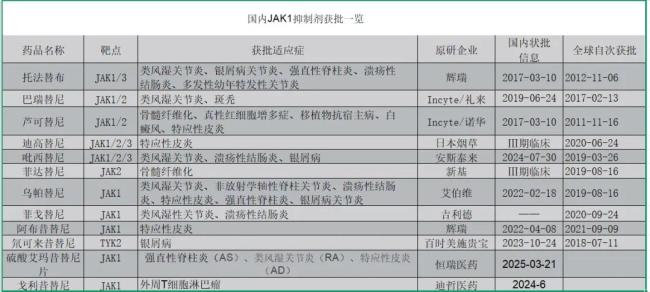 2011年,国内首款JAK抑制剂芦可替尼获批上市,到去年销售额已经有所放缓,2017年上市的辉瑞的托法替布2024年全球销售额为11.68亿美元,同比下降31%。