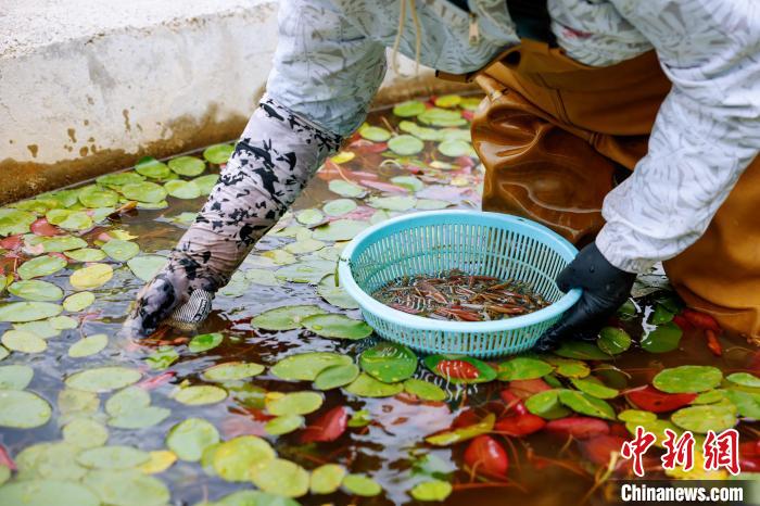 近日,在湖北省恩施土家族苗族自治州咸丰县黄金洞乡五谷坪村的高山莼菜基地,身穿防水裤的村民们忙着采摘莼菜。莼菜被誉为“水中人参”,天生娇贵,对水质、土壤等生态环境要求非常高。近年来,咸丰县利用独特的生态环境,因地制宜发展莼菜、白茶等特色产业110万亩,助农增收致富,助力乡村振兴。廖祖英 摄