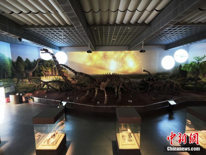 楚雄彝族自治州博物馆古生物厅的装架恐龙化石。刘越 摄