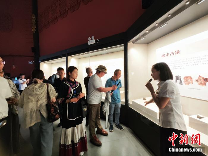 楚雄彝族自治州博物馆内,讲解员向行进式学习团成员讲解古猿历史。刘越 摄