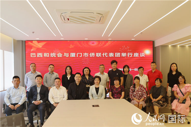 参加福建省厦门市侨联代表团与巴西和统会座谈的嘉宾合影。人民网记者 时元皓摄