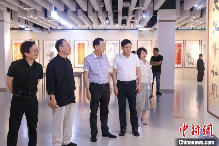 与会嘉宾参观书画展。揭阳市文化广电旅游体育局 供图