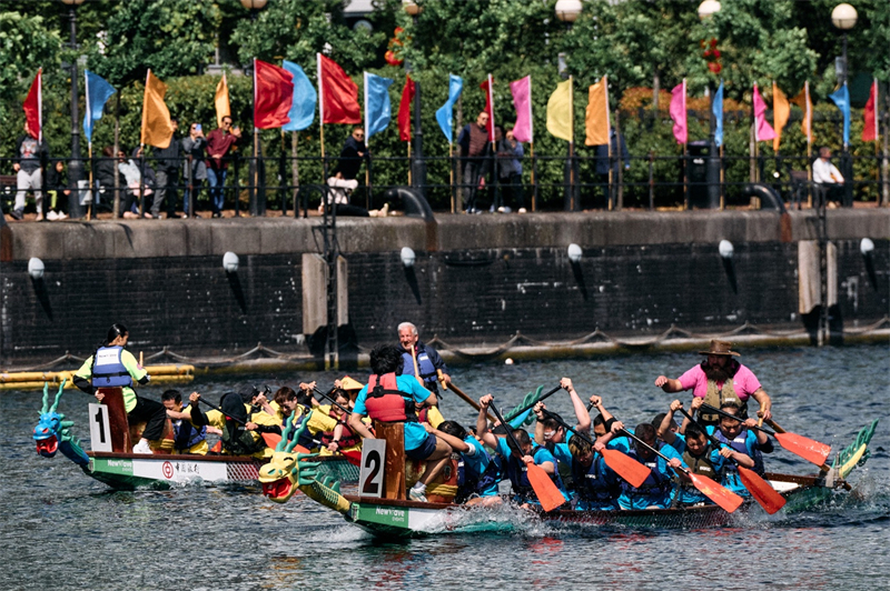 来自曼彻斯特当地食物银行代表队的队员珍妮特告诉记者,过去团队一直是在陆上坐着用木棍练习划龙舟技巧,通过这次活动,大家对中国文化有了更深的理解,同时也非常享受参与龙舟竞赛的全过程。