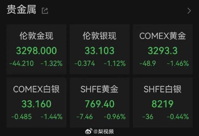 国际金价大幅下挫 现货黄金跌破3300美元