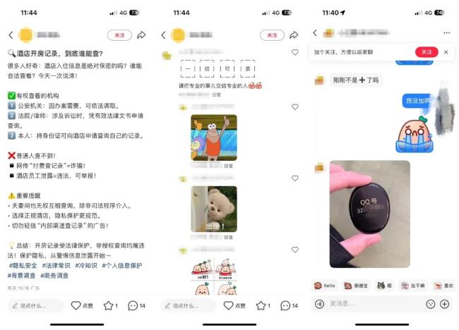 随后,北京商报记者在一家主流社交平台上,以“私人侦探”“定位查人”为关键词检索发现,尽管大量笔记明确标注“非法获取他人信息属违法行为”等警示内容,但其评论区仍存在隐秘的招揽信息。部分账号以隐晦话术留言“有渠道”“可解决”,引导用户私聊。