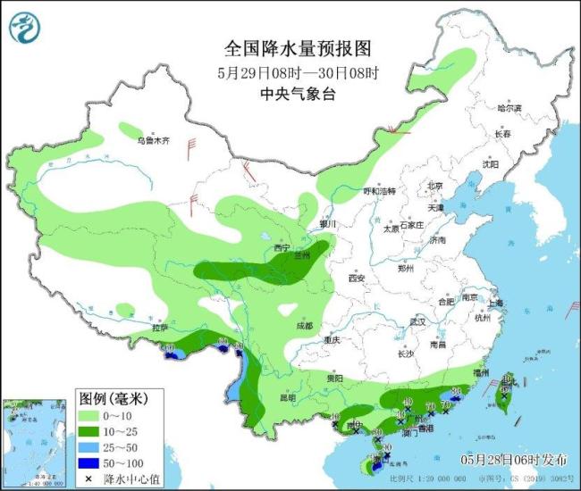 明天,南方降雨明显减弱,广西南部、广东、福建南部、台湾岛、海南岛等地有分散性大雨,局地暴雨;西藏东南部、云南西部有中到大雨,局地暴雨。