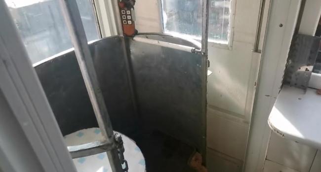 视频显示,在小区内部,一名老人乘坐的电梯正在上升,运行电梯的线缆一端连接着居民楼,另一端则连接着小区里的路灯杆。随着电梯顶部导轨的移动,电梯缓慢上升。电梯连接到居民楼五楼的一户人家,而连接路灯杆的线缆一端安装了操作台,上面分布着一些按钮。