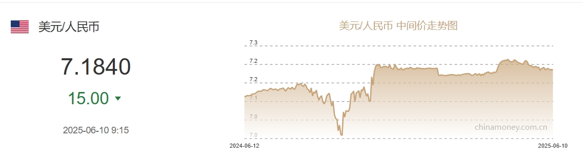 6月10日人民币对美元中间价报7.1840元 上调15个基点