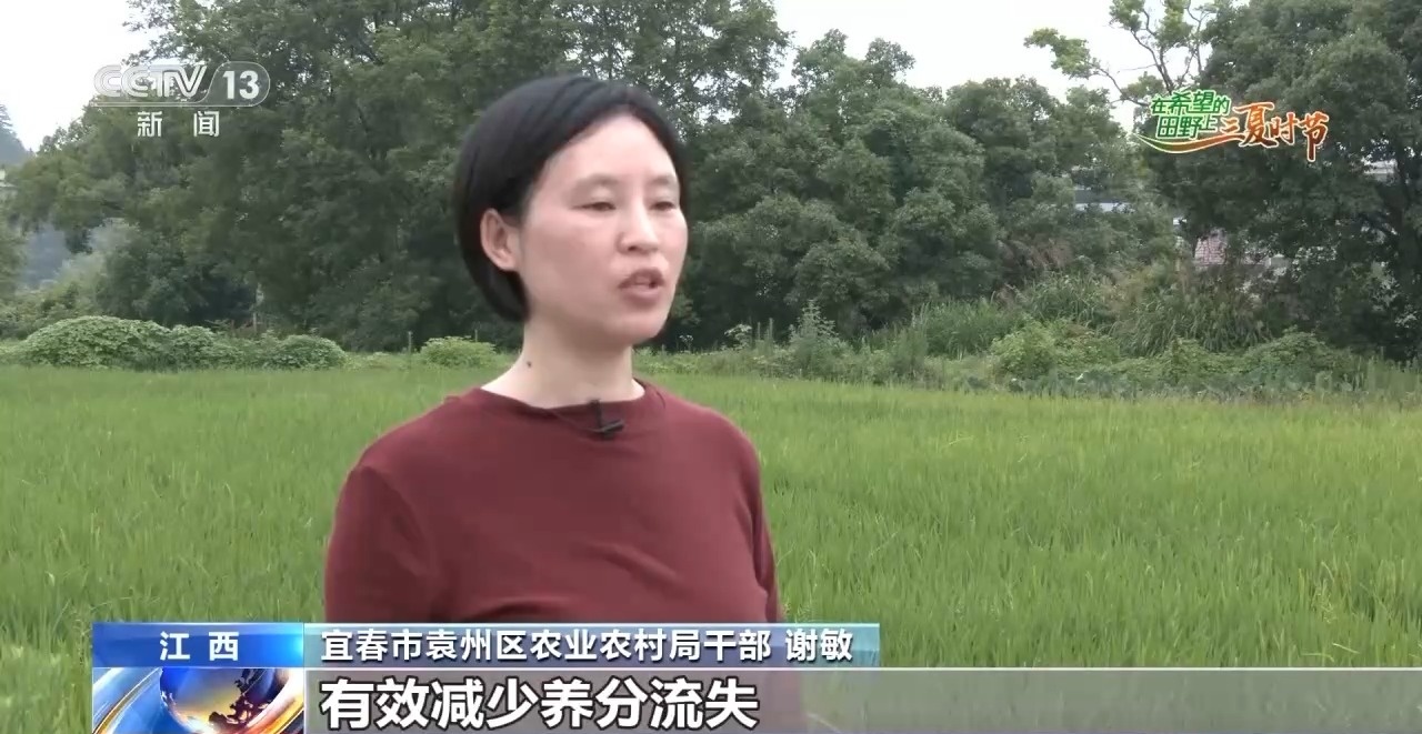 宜春市袁州区农业农村局干部 谢敏:定点定量施肥,有效减少养分流失,更重要的一点,秧苗吸肥效果会更好,有助于提高水稻结实率,每亩产量提高5%到10%。
