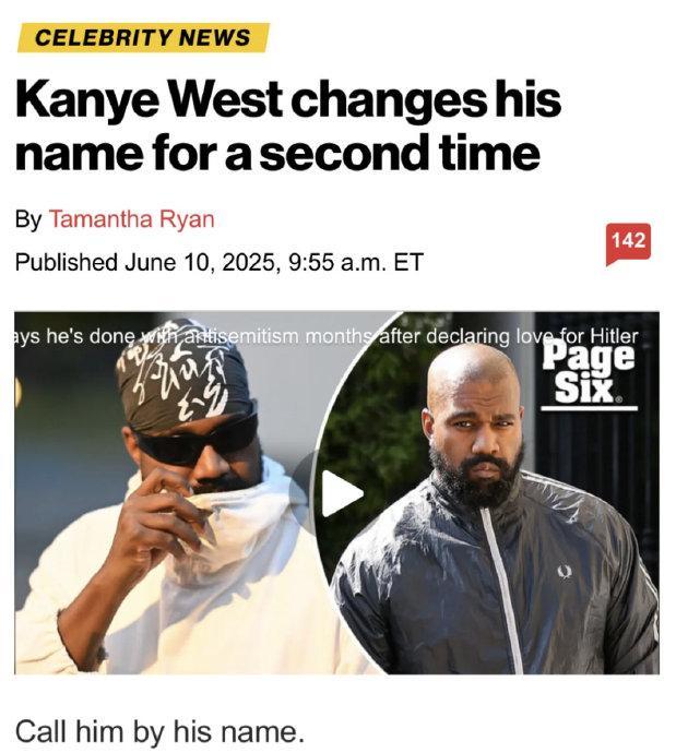 据外媒,侃爷Kanye West再次更改了自己的名字,从“Ye”改成了“Ye Ye”,他已经用“Ye Ye”的名字提交了新的商业文件。但目前他并没有公开官宣此事。据悉,他在2021年申请将自己的名字由“Kanye Omari West”改为“Ye”。