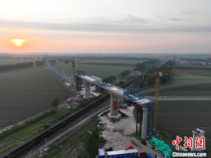 “此次完成转体施工的绥化南特大桥转体连续梁全长约145.4米,单个转体连续梁重量约4781吨,上跨滨北铁路,为哈伊高铁哈尔滨至铁力段重难点工程。”施工单位中铁十二局哈伊高铁项目总工程师于泳介绍说。