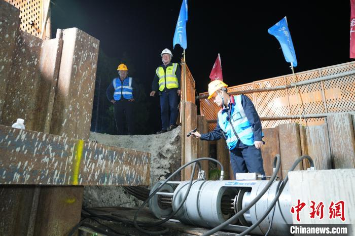 转体过程采用智能化牵引控制系统、数据采集系统,实现大桥转体速度精准控制,转体数据实时分析计算,推动大桥沿转体球铰以每分钟1度的角速度分别连续均衡逆时针旋转54.5度、61.5度,实现转体合龙精度毫米级控制。