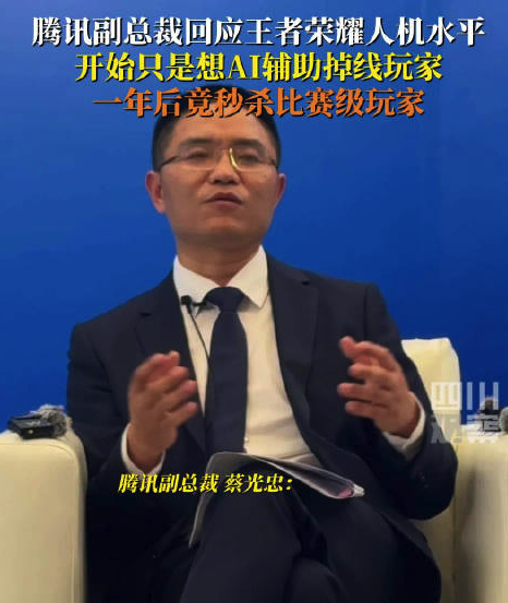 6月11日,四川成都。第二届“一带一路”科技交流大会现场,腾讯副总裁蔡光忠在接受四川观察采访时表示:王者AI辅助可秒杀比赛级玩家起初开发王者AI,是因为想在王者荣耀玩家掉线的时候用AI顶替。一年后开发出的AI“绝悟”,会在游戏中自我学习,最终居然可以在游戏中秒杀比赛级玩家了。