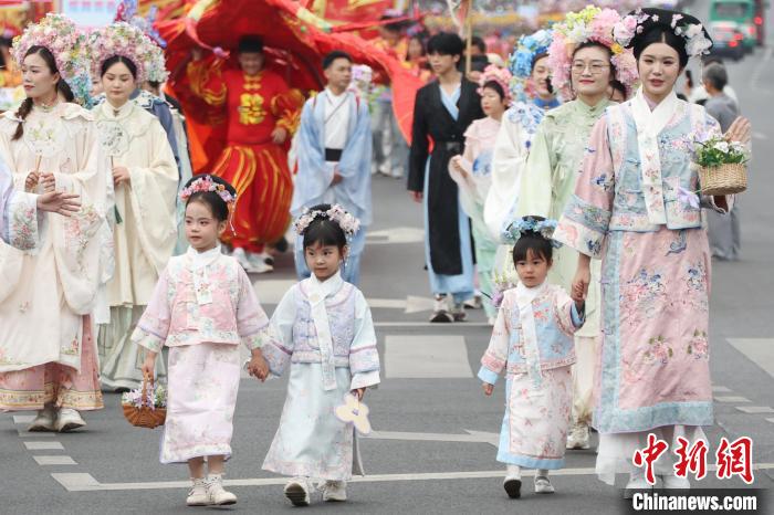 古装队伍在巡游途中。中新网记者 泱波 摄