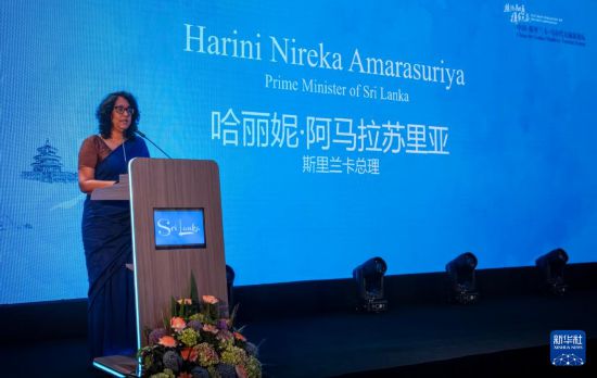 6月16日,在斯里兰卡科伦坡,斯里兰卡总理阿马拉苏里亚在中国-斯里兰卡-马尔代夫旅游论坛开幕式上致辞。新华社发(姜健摄)