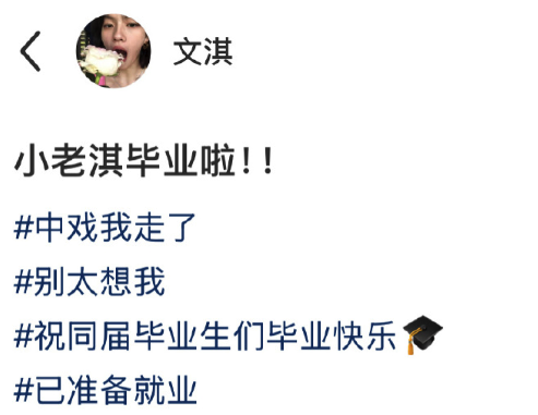 文淇的毕业宣言:中戏我走了别太想我。