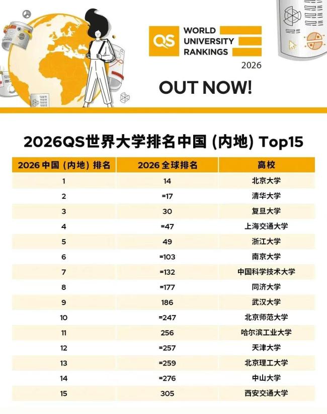 中国11所高校入围2026年QS世界大学排名前100 内地高校持续攀升
