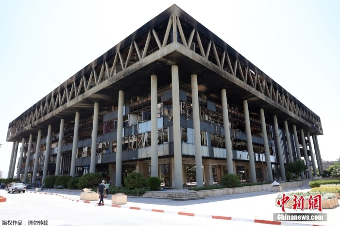 资料图:当地时间6月19日,伊朗德黑兰,被袭击过后的伊朗国家电视台建筑物损毁严重。