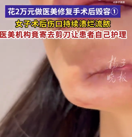 女子医美后伤口溃烂留疤被分手 机构寄刀让自行护理