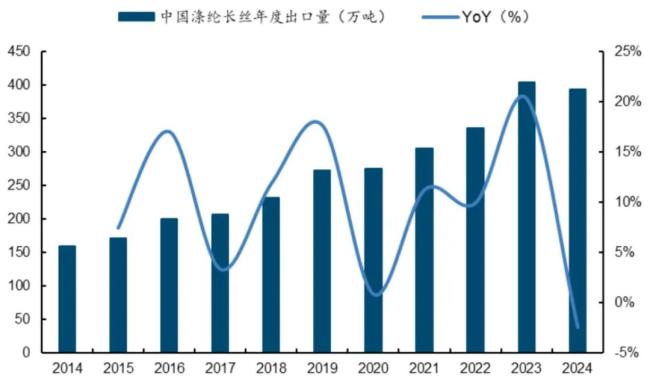 所以总体来看,2025年我国服装纺织行业内需和外需基本保持稳定,涤纶长丝的下游需求在2025年不会有太大“惊喜”。