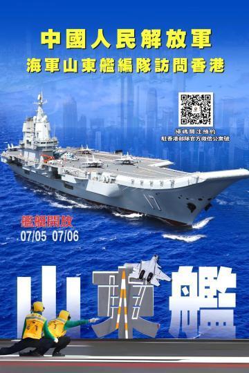 中国人民解放军海军山东舰航母编队将于7月3日至7日访问香港,期间编队舰艇面向香港市民开放参观。驻香港部队于6月28日晚发布了相关公告。