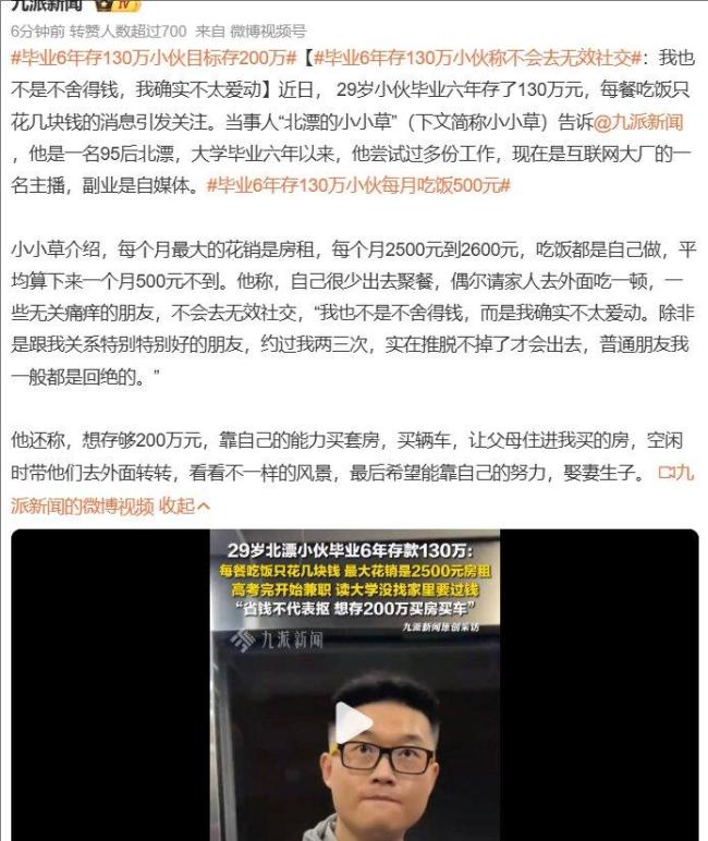毕业6年存130万小伙每月吃饭500元 极限省钱达人