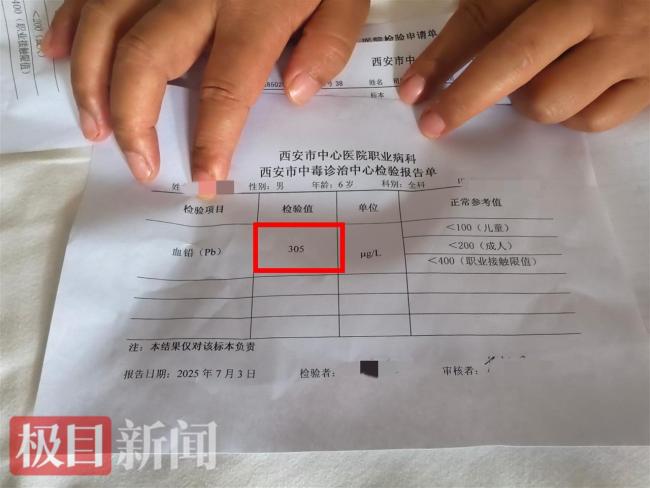 7月1日下午,多位学生家长发现自家孩子血铅超标。当晚,李女士带孩子到附近医院检查,医生告知需要3天才出结果。后来,她跟随其他家长一起到学校要求说法。有家长表示,自己的孩子去年就有呕吐症状,当时以为是肠胃炎,多次治疗无果。直到最近才发现,这些症状可能是血铅异常的征兆。经过检查,这名家长的孩子血铅含量确实超标。李女士的儿子血铅检验值为305μg/L,而她的血铅检验值为25.3μg/L,两人相差超11倍。同病房的另一名孩子的血铅检验值达到420μg/L至460μg/L,属于重度超标。